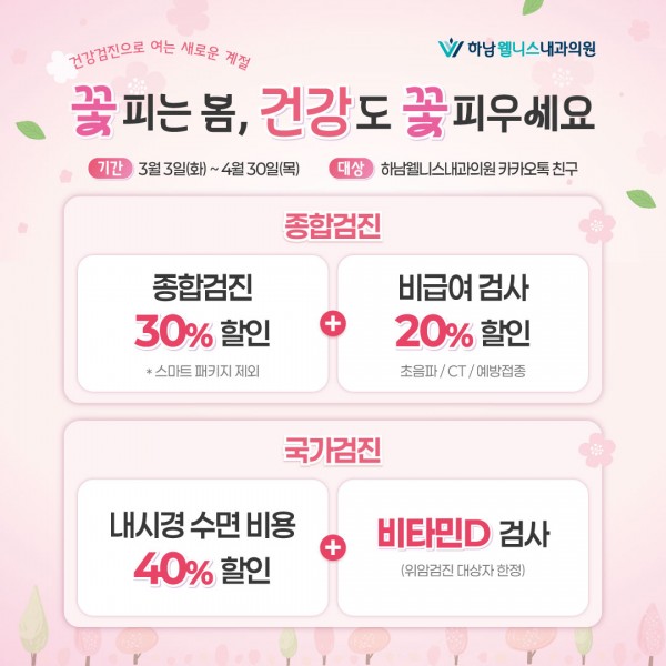(스마트 프로그램 제외)+비급여 검사 20% 할인(초음파, CT, 예방접종)